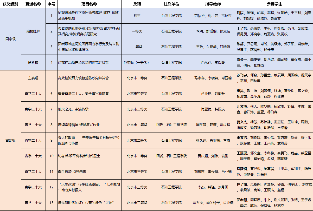 接下来,石油工程学院将继续加强竞赛经验成果转化,通过举办交流会、分享会等方式,以点带面,营造良好科研和备赛氛围,带动更多学生参与创新创业,努力培养更多“敢打擂、能夺擂”的石工英才!
