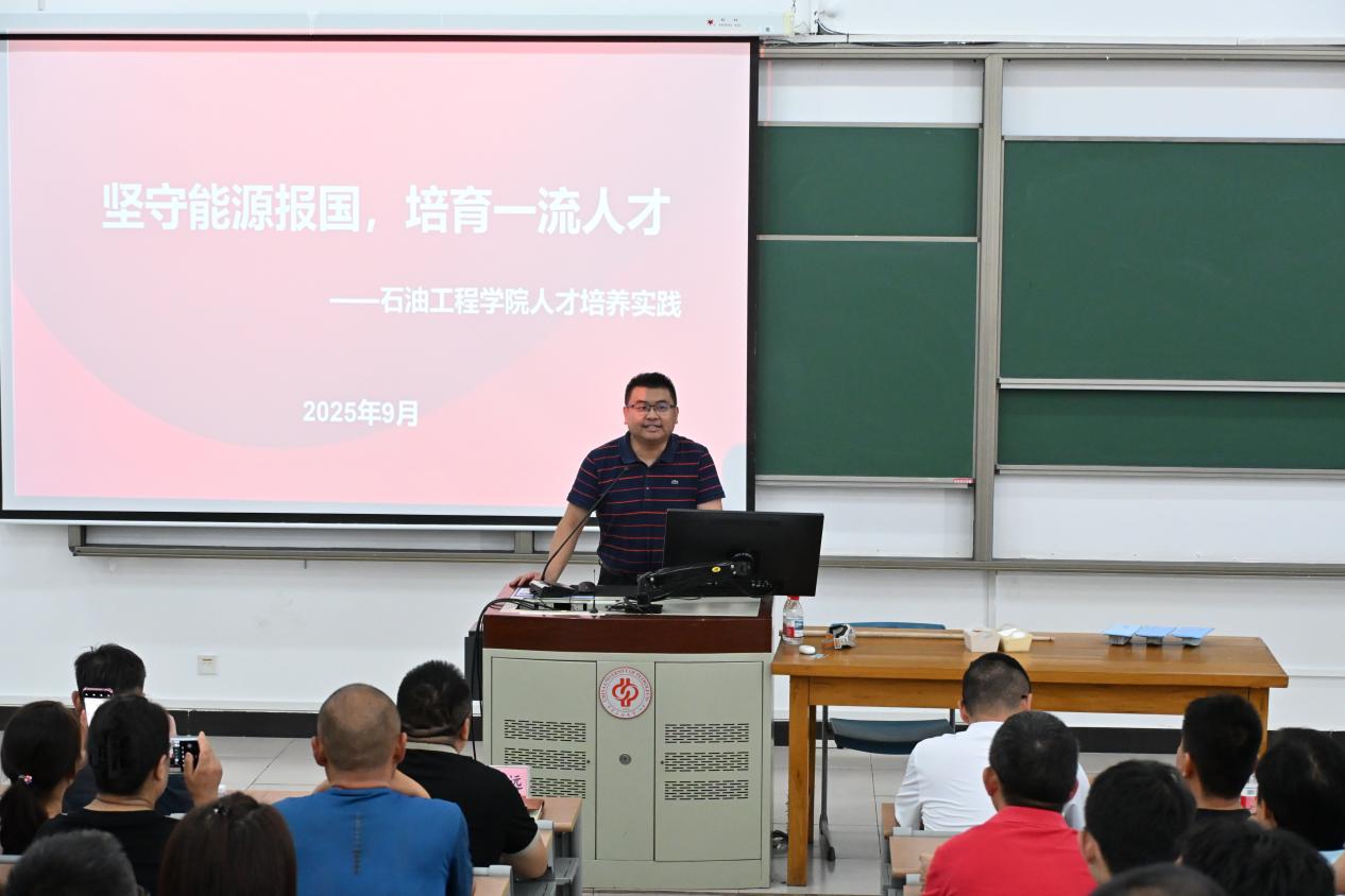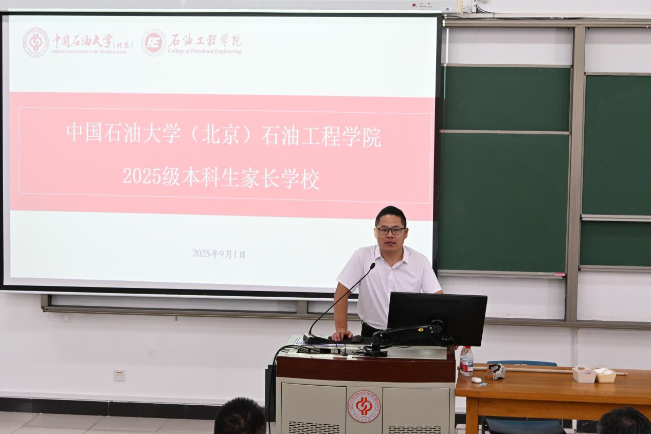 为贯彻落实立德树人根本任务,拓宽思政育人渠道,构建学校、家庭协同育人格局,石油工程学院于2025年9月1日开展第三期2025级本科新生家长学校。学院党委副书记刘东东、副院长李世远,心理中心教师李明珠,2025级本科生辅导员刘衡升及全体2025级本科生家长参加会议,会议由刘衡升主持。