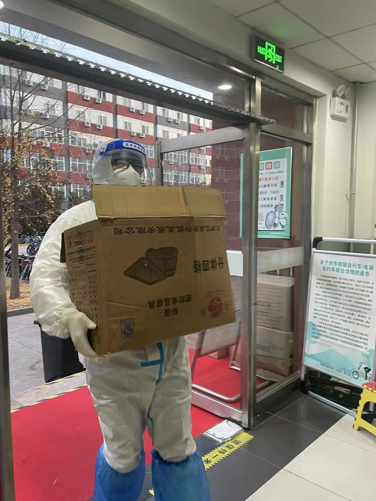 王斌老师在东校区搬运物资