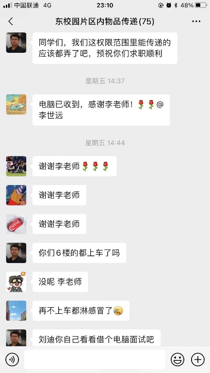 工程力学系全体男教师主动报名参加志愿服务保障队伍。其中李世远老师第一时间进驻疫情最前线东校园,协助完成学生送餐、转运和搬运片区防疫物资等工作。同时,应学生需求,积极为学生搬运急需的物品,保障被转运学生及东校园内学生求职、应考等顺利进行。校外教师参与校区间运输工作,搬运学生滞留物品,保障其学习考试需求,协助学院解决本科生地质实习纸张不足问题、滞留物品搬运等问题。