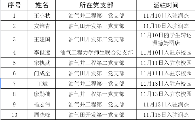 油气井工程系王小秋、宋执武、卢运虎、廖勤拙、王斌5位教师组成的志愿服务团队,奋战在任务最艰巨的东校园和润杰公寓。卢运虎老师主动请缨前往北校区工程东楼实验楼协助关闭部分仪器设备的电源,消除了火灾隐患。各系统计学生需求200多条,组织教师为毕业研究生运送电脑,解决了学生求职面试和线上考试无电脑的难题。