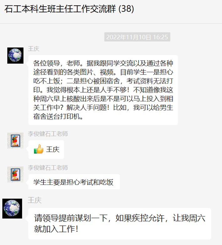 11月9日以来,一场突如其来的疫情,扰乱了我们学习、工作和生活的节奏。为快速、有效应对疫情,学校迅速吹响战疫集结号,全体开云kaiyun官方网站人投入到这场以快制快的战斗中。学生们闻令而“静”,石油工程学院的教师们逆向而行、迅速行动,投入到校园疫情防控阻击战中。上下同心、风雨同舟,学院教师第一时间进驻校园、入住宿舍,为学生搬运物资,给学生送餐,带学生外出就医,用实际行动诠释师者担当,为学生健康保驾护航!