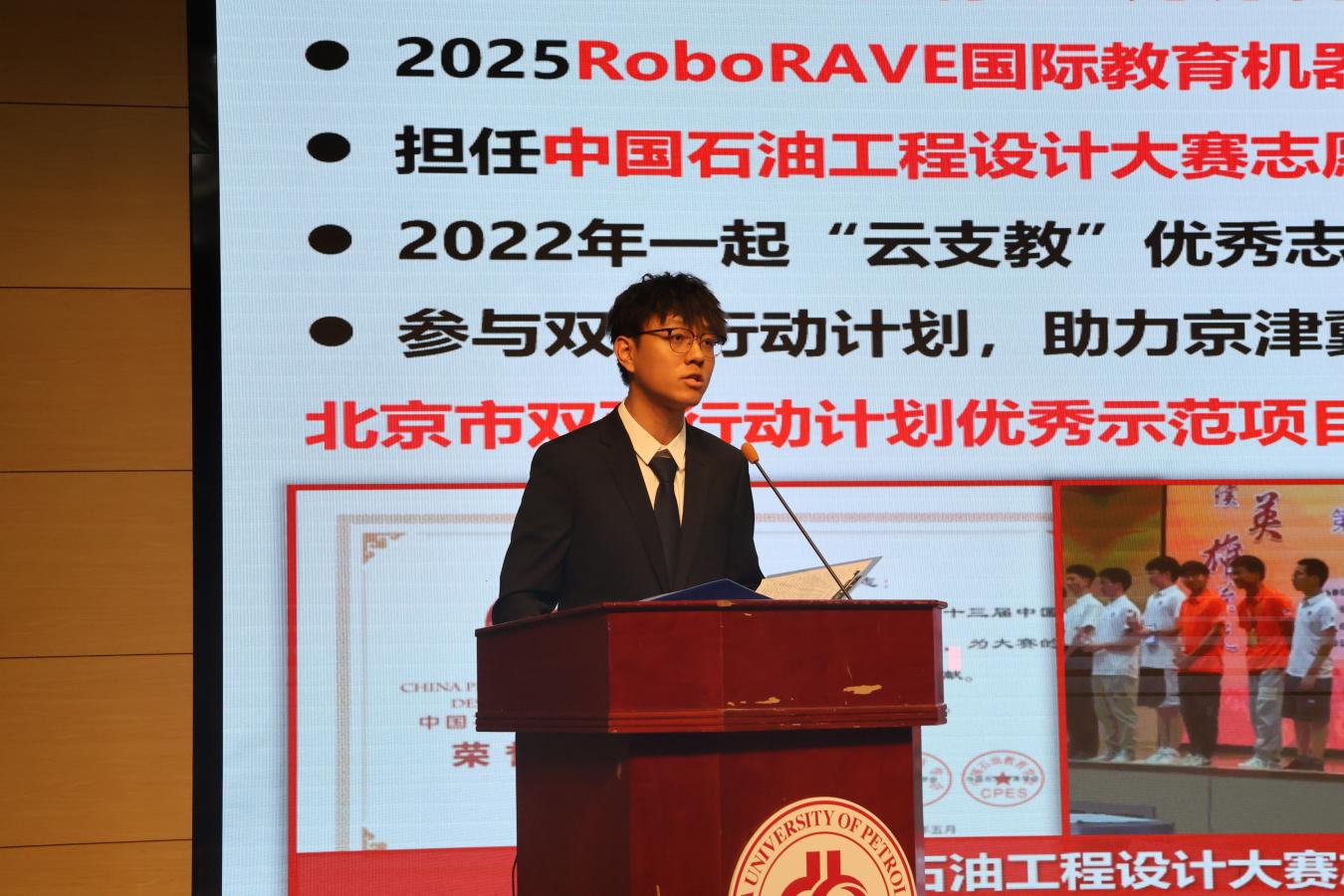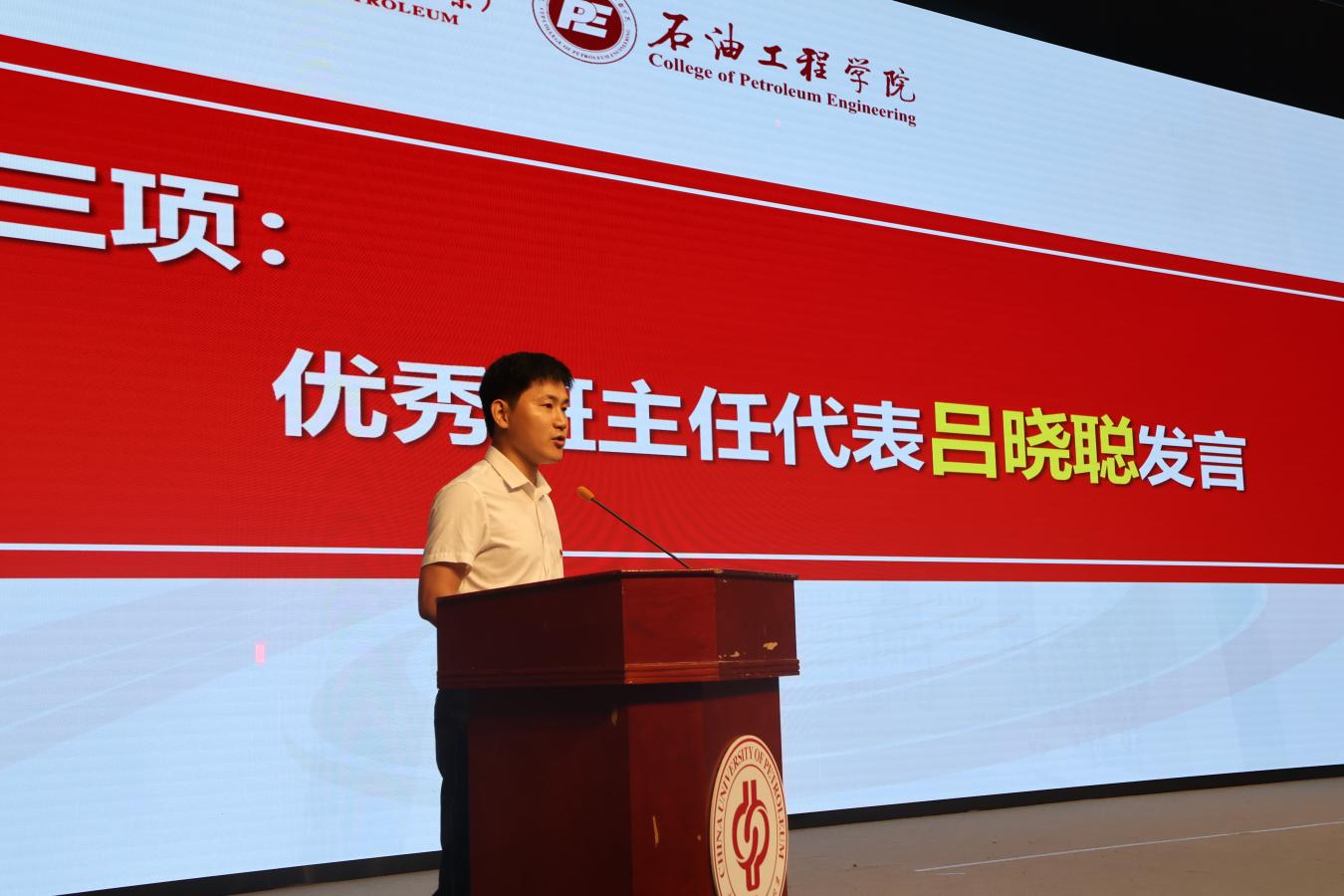 2022级本科生张泽驿作为朋辈辅导员代表发言。他分享了本科三年的学习、科研、实践、社会工作经验,勉励同学们坚持对理想的不懈追求、躬耕自己的精神田园,并祝愿大家在开云kaiyun官方网站石油工程学院绽放最美的光彩。