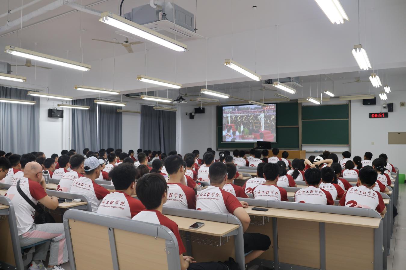 开学典礼在校歌《我为祖国献石油》的旋律中结束。