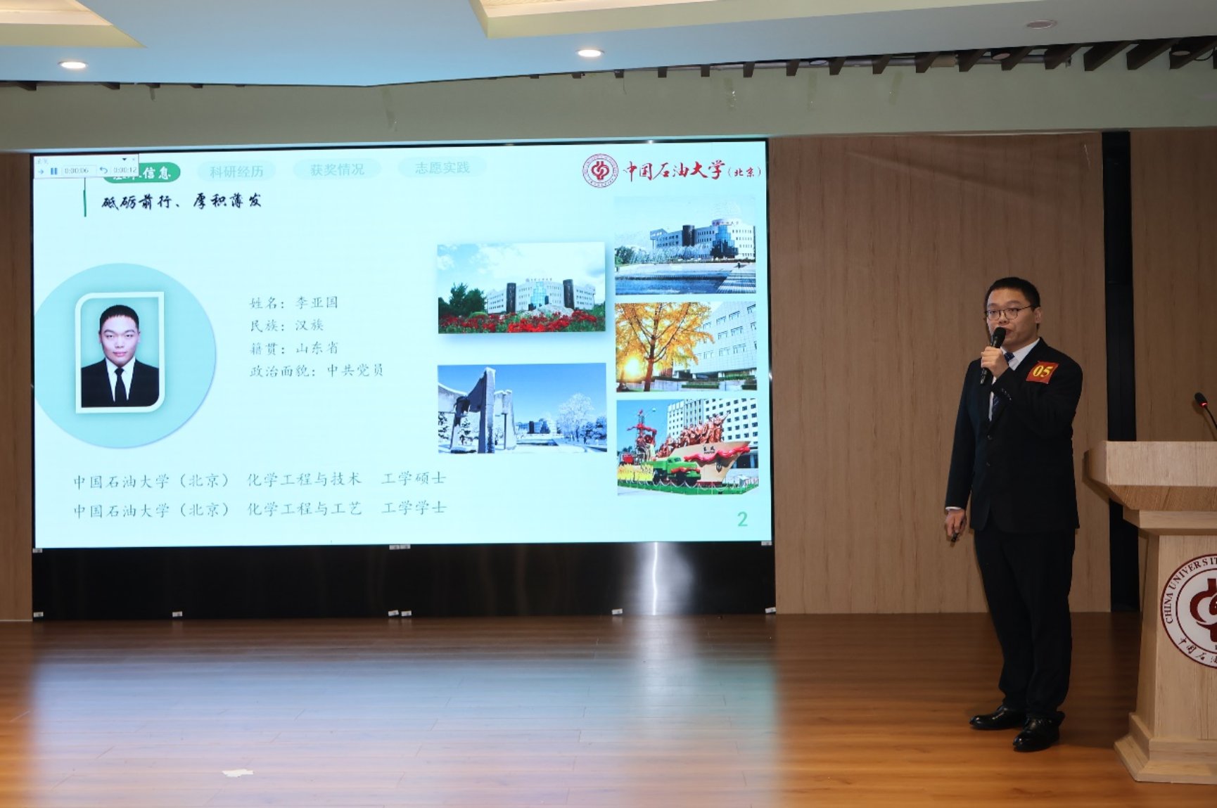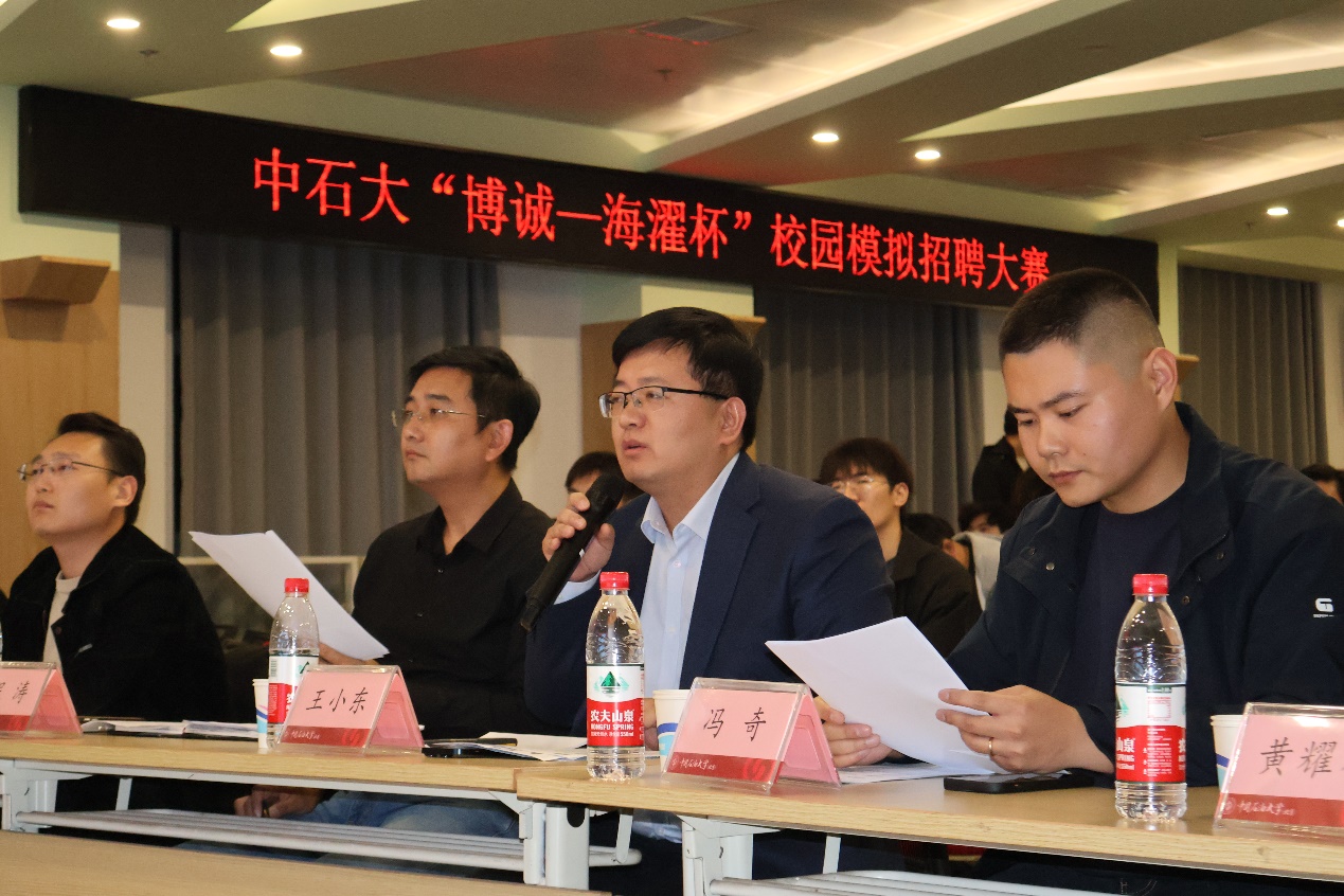 本次大赛以“七十五载长歌奋进,赓续前行能源报国”为主题,由共青团开云kaiyun官方网站(北京)石油工程学院委员会主办、石油工程学院研究生会承办,得到了北京开云kaiyun博诚科技有限公司和陕西海濯能源有限公司的联合赞助。北京开云kaiyun博诚科技有限公司副总经理王小东、总经理助理冯奇、市场部经理黄耀存,陕西海濯能源有限公司程涛,石油工程学院辅导员李杰受邀参加本次决赛并担任评委,来自不同学院、年级的9位优秀选手闯入决赛同台竞技,为现场110余位观赛同学带来了一场求职盛宴。