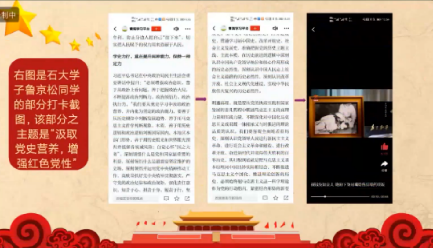 本次活动通过“学党史”“讲党情”“感党恩”三重递进,构建党史学习新模式,助力青年学子强信念、传精神、抒理想。后期将解锁“青春笔墨堂”活动,进一步抒发青年学子对建党百年的情感与祝福。
