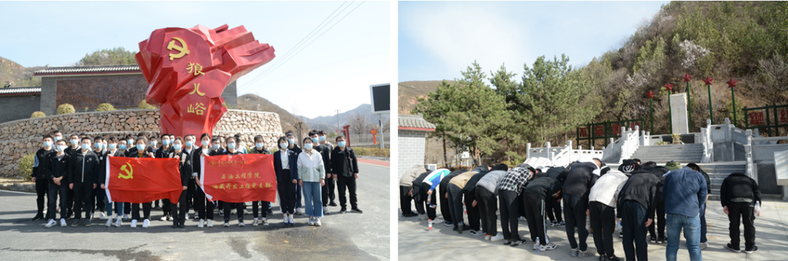 又是一年清明际,又是追思纪念时。为引导广大党员、团员坚定理想信念,传承革命精神,4月5日,石油工程学院组织开展“追随先烈足迹,传承革命精神,坚定理想信念”主题学习教育活动,油藏开发工程党支部全体成员、石工本21-2团支部团员代表等30余人共同参加活动,先后前往昌平烈士陵园、狼儿峪红色教育基地、高崖口革命烈士纪念碑、长峪城南口战役旧址开展清明祭扫与主题学习实践教育活动。