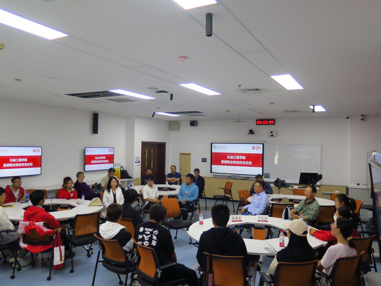 10月2日上午,石油工程学院喜迎70周年校庆系列活动——“基层就业创业校友论坛”在第四教学楼109教室举办,加拿大雷普索尔公司经理成荣霞,大港油田公司井下作业公司总工程师张康卫出席论坛并做分享,石油工程学院党委副书记刘东东、门成全老师、辅导员刘衡升以及20余名学生参加论坛,论坛由门成全主持。
