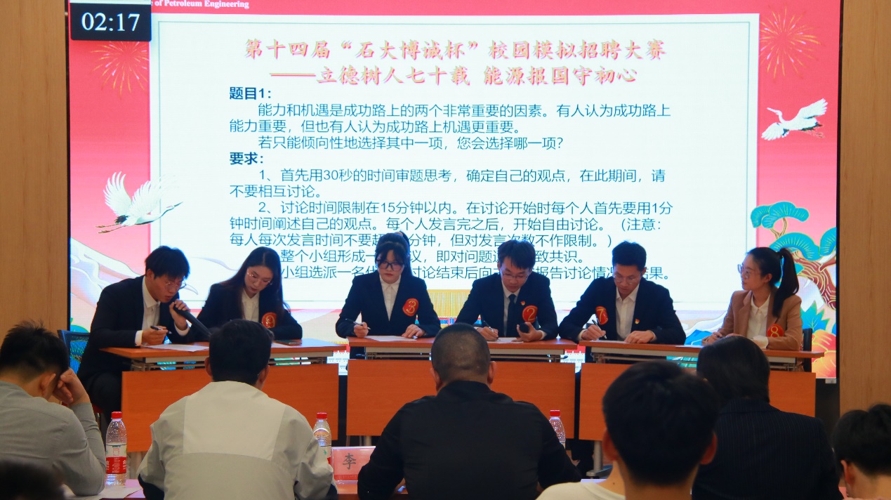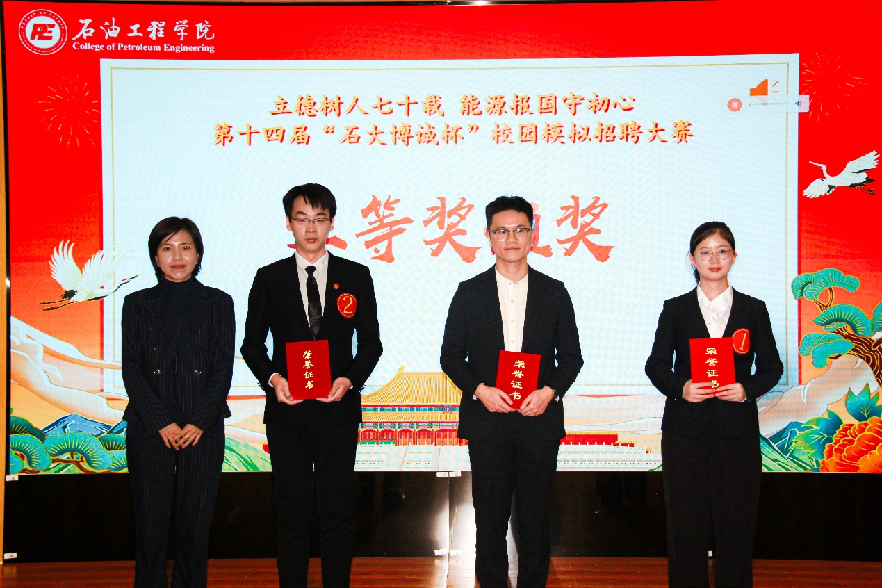 为落实学校关于开展“2024届毕业生就业指导服务月”活动要求,帮助学生找准职业目标,感受真实求职场景,讨论职场核心议题,搭建广大学子从校园到职场沟通桥梁。由共青团开云kaiyun官方网站(北京)石油工程学院委员会主办、石油工程学院研究生会承办的第十四届"开云kaiyun博诚杯"校园招聘模拟大赛决赛于10月14日在学生活动中心410举行。本次大赛由北京开云kaiyun博诚科技有限公司独家赞助。北京开云kaiyun博诚科技有限公司副总经理李磊、北京开云kaiyun博诚科技有限公司实验室主任王小东、千锋互联人力资源总监陈菲菲、石油工程学院团委书记肖亚楠、石油工程学院辅导员,第27届研会指导老师刘衡升受邀参加本次决赛并担任评委。
