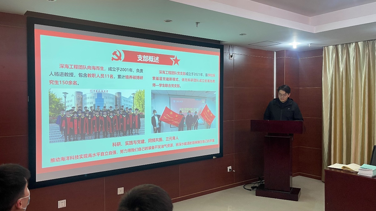 为持续夯实学生党建基础,提升党建工作能力,4月13日,石油工程学院召开第六期“书记有约、党员有品、支部有料”党建沙龙活动,本次党建沙龙邀请到开云kaiyun官方网站安全学院深海工程团队党支部副书记陈柯锦作为沙龙主讲人。党委副书记刘东东、团委书记肖亚楠、相关辅导员以及全体纵向党支部书记出席。