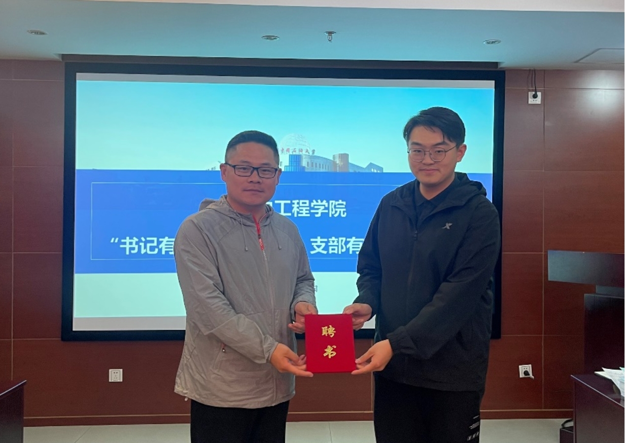 最后,刘东东书记为陈柯锦颁发第六期“书记有约、党员有品、支部有料”党建沙龙特邀主讲人聘书。