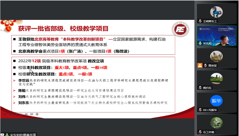 2023年1月5日下午,石油工程学院召开处级干部2022年年度考核述职会议,会议采用线上腾讯视频的方式开展,全体教职工参加。会议由石油工程学院党委书记黄世军主持。