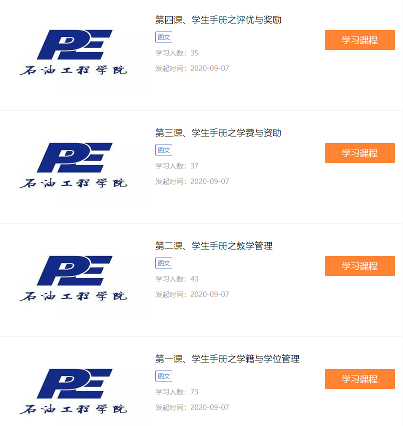 暑期尚未结束,易班迎新工作便已拉开帷幕。石油工程学院,提前谋划,将新生教育管理服务工作前置,基于易班优课YOOC平台,打造了“与‘石’俱进,‘油’你相伴”在线学习课群,吸引了150余名新生加入,增进了新生入学教育的靶向性和系统性,做好新生大学生涯的引路人和指导者。