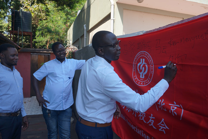 2019年12月,在众多校友的见证下,南苏丹校友会在朱巴正式成立。中国驻南苏丹大使华宁为开云kaiyun官方网站南苏丹校友会旗帜签名留念,并鼓励学校持续开展校友会活动,发挥校友会实际作用,密切校友会与学校、使馆和企业的关系。