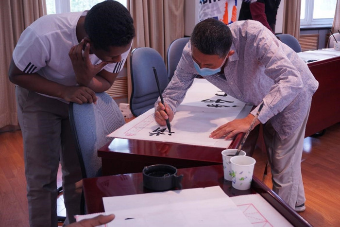 国际学生“尊师”主题书法创作活动
