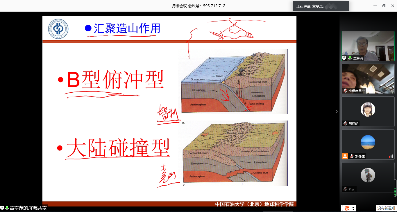 2020年5月20日晚,地球科学学院油气勘探与开发地质系通过腾讯会议以线上学术交流的形式,成功举办了第四十一期的学术沙龙。地球科学学院童亨茂教授以“中国盆-山构造演化纲要”为主题主讲了本期学术沙龙,逾百位校内外师生及专家共同参加了此次学术活动。
