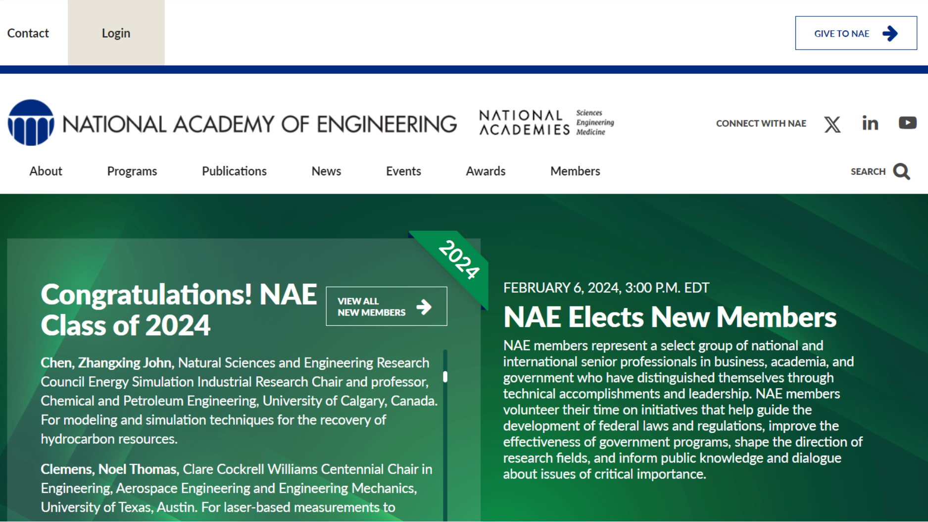作为美国两大国家学院(美国国家科学院和美国国家工程院)之一,美国国家工程院成立于1964年,为全美国提供工程科学和技术领导服务。美国国家工程院院士是工程科学和技术界人士所能获得的最高职业荣誉之一。美国国家工程院院士称号颁发给那些为工程研究、实践或教育作出杰出贡献,包括对工程文献作出重要贡献的人士,或是在新兴/发展中的技术领域取得重大进展、在传统工程领域取得重大进步、在工程教育方面开发/实施创新方法的先驱者。