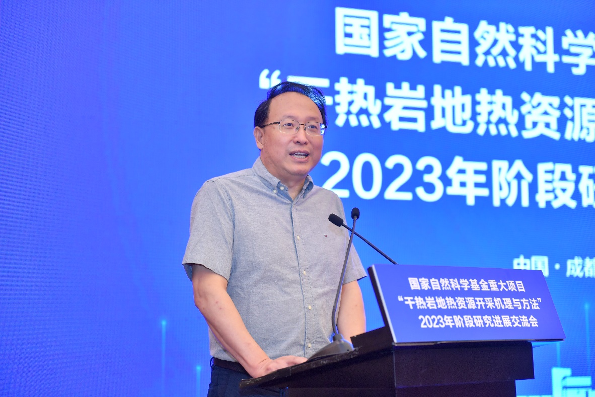 会上,成都理工大学校长刘清友向出席会议的各位院士、专家和领导表示诚挚的欢迎,他介绍了成都理工大学在地热勘探开发方面取得的成就,对与会专家领导给予项目与学校的支持关心表示感谢,期望各位专家领导能够在本次阶段交流会上,不吝赐教、分享智慧,共谋干热岩地热资源开采利用的发展大势。