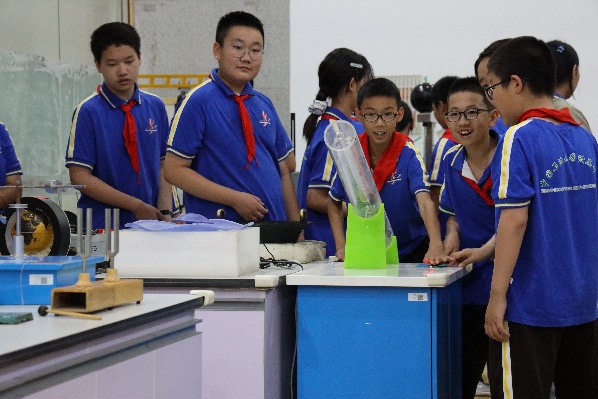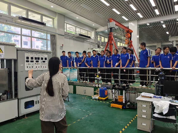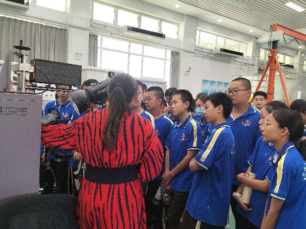在沉积动力过程模拟实验室,学生们参观了我国首个现代化沉积地质模拟实验室。通过观察水槽中沉积物的搬运堆积过程,配合三维激光扫描仪、超声流速剖面测量仪等高精度设备的演示,学生们对地质作用有了更直观的认识。