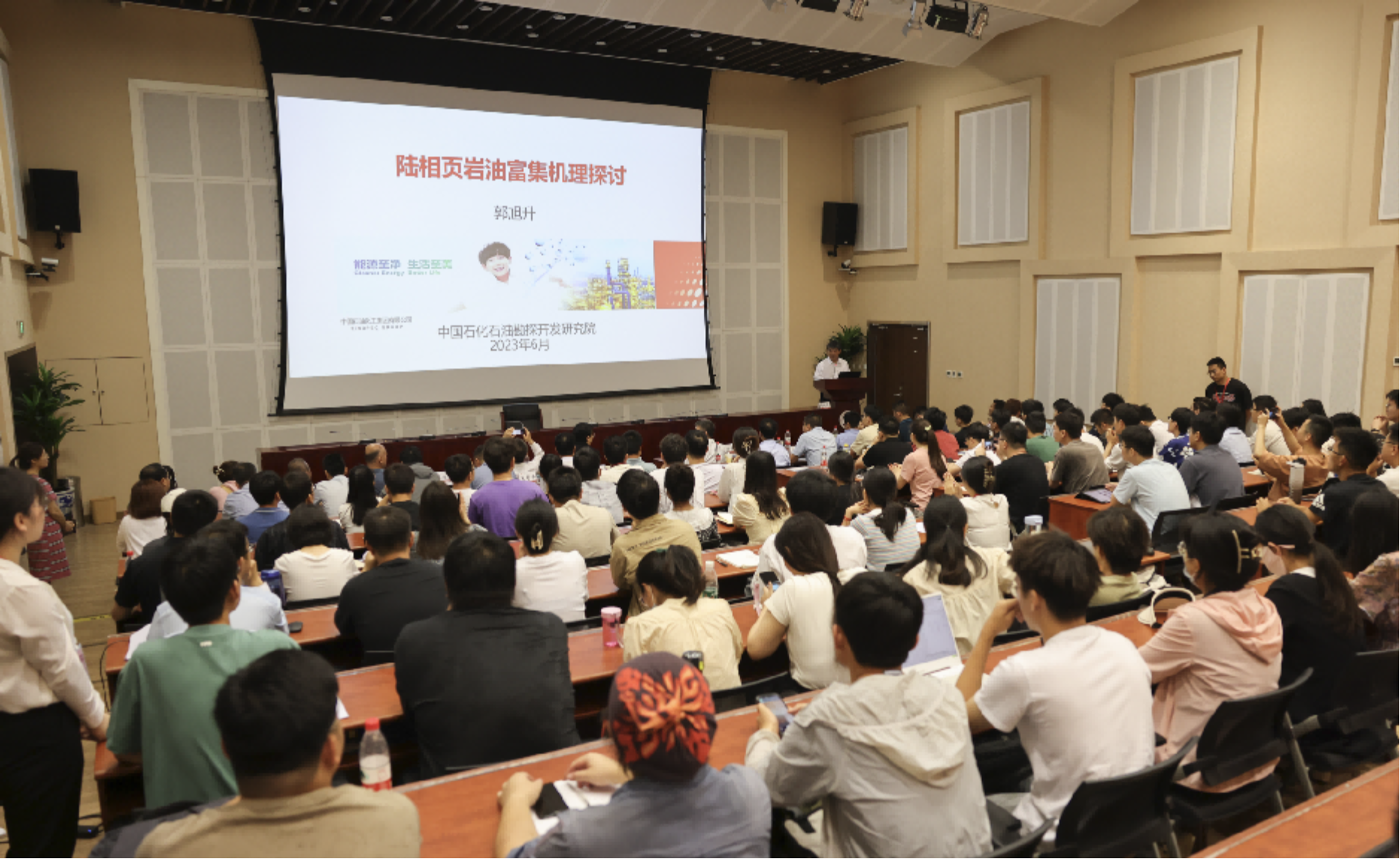 报告结束后,郭旭升与在场师生就陆相页岩油在半深湖—深湖相区的主要发育情况、岩相—有机相组合与有机质差异热演化生烃的成因关系、陆相页岩油未来勘探开发重难点等问题进行互动交流。