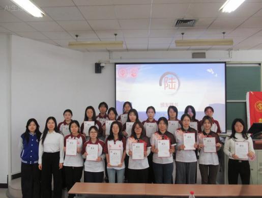 刘彤彤、刘语灿向各学生组织、社团成员颁发聘书并合影留念。