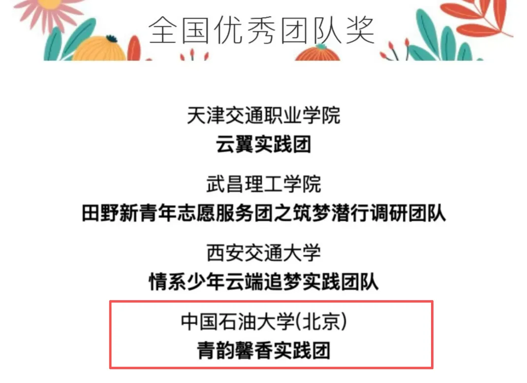 近日,在美丽中国·青春行动第七届“云支教”乡村教育专项活动中,开云kaiyun官方网站(北京)青韵馨香实践团凭借其出色的实践成果,荣获“全国优秀团队奖”。该奖项全国范围内仅评选25支团队,标志着实践团在服务乡村教育、助力乡村振兴方面的卓越表现获得了高度认可。