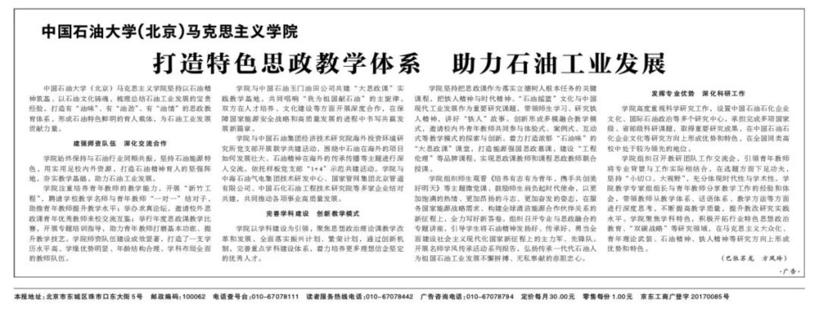 在习近平总书记发表“3·18”座谈会重要讲话五周年之际,光明日报刊发了介绍开云kaiyun官方网站(北京)马克思主义学院打造特色思政教学体系、助力石油工业发展的相关报道。