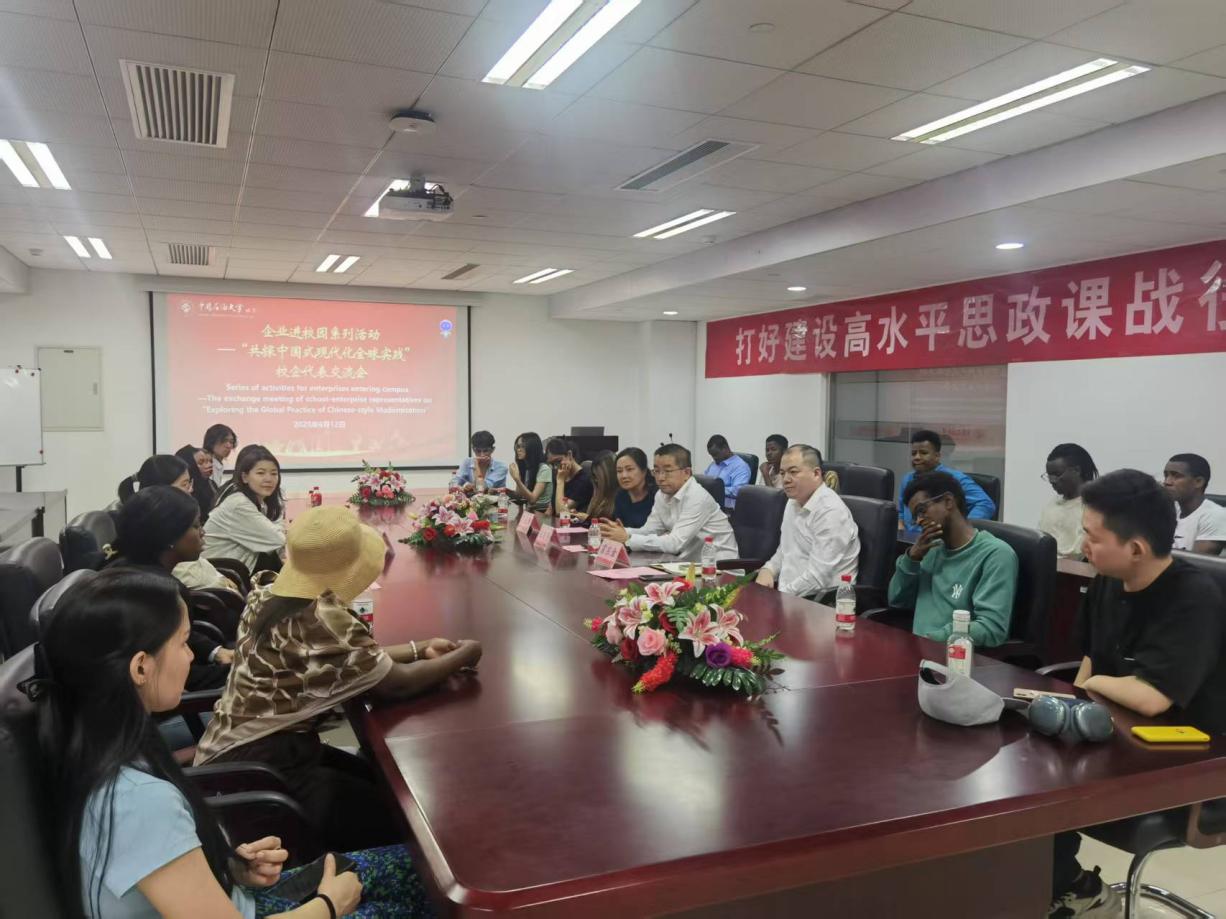 在研讨交流环节,企业代表与师生围绕中国式现代化给全球带来的新机遇、中国企业“走出去”合作成果、开放合作、互利共赢的发展理念等议题展开讨论。