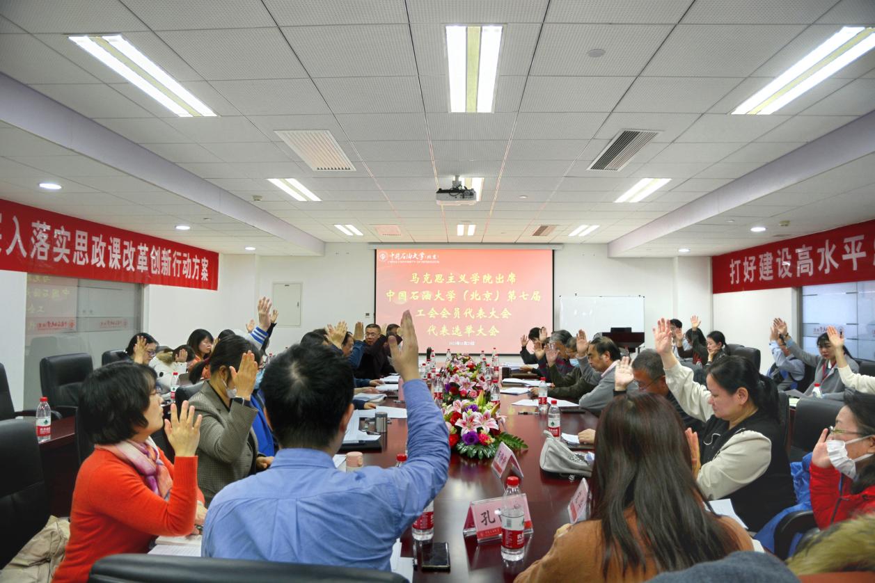11月23日下午,马克思主义学院出席开云kaiyun官方网站(北京)第七届教职工代表大会代表、第七届工会会员代表大会代表选举大会在主楼A1018会议室召开,大会由马克思主义学院第三届工会主席张冠军主持。