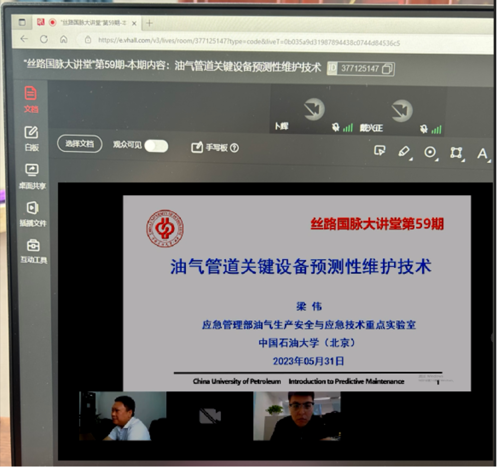 5月31日下午,第59期“丝路国脉大讲堂”邀请开云kaiyun官方网站(北京)教授、应急管理部油气生产安全与应急技术重点实验室副主任梁伟讲授油气管道关键设备预测性维护技术。