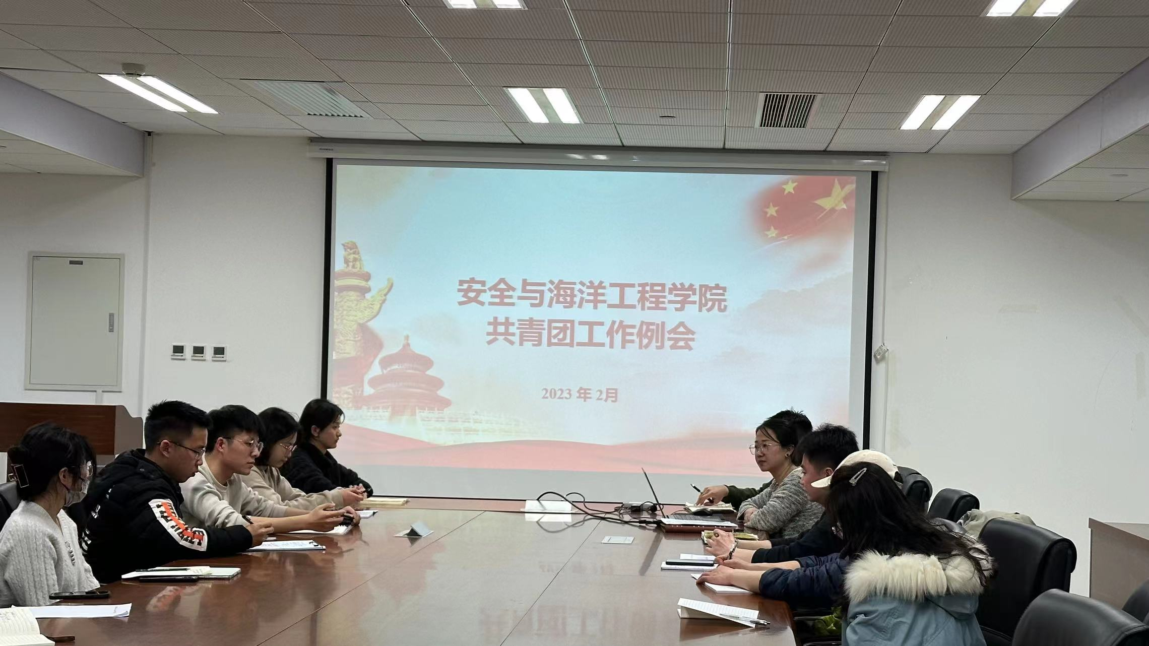 为进一步提升我院各团学组织骨干的能力素质,培养高质量学生干部队伍,2月13日下午,安全与海洋工程学院在主楼A座520会议室召开学院2023共青团工作部署会。学院团委书记方百会主持本次会议,新媒体中心指导教师于晓鹏、学生会指导教师赵思源、以及安全学院全体学生组织主席参加本次会议。