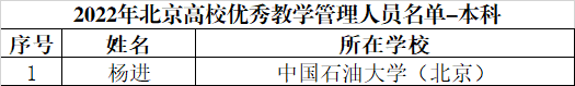 近日,北京市教育委员会公布2022年北京高校“优质本科课程”“优质本科教材课件”“优秀教学管理人员”“优秀本科实验教学指导教师”“本科教学改革创新项目”等奖项和项目的评审结果。我院海洋油气工程系杨进教授获评北京高校“优秀教学管理人员”,安全工程系董绍华教授、徐晴晴老师主编的《管道风险评价技术》获评北京高校“优质本科教材课件”。