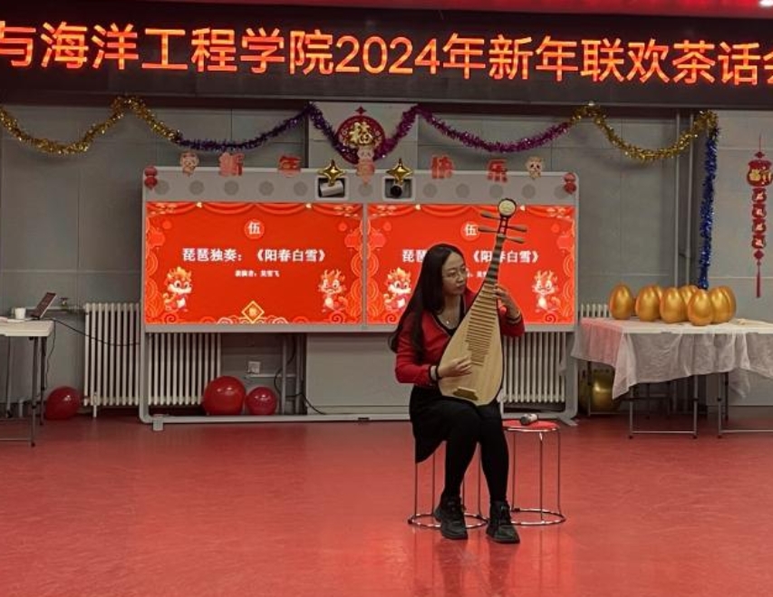 丰富多彩的节目轮番登场,唱跳俱佳的《小苹果》将全场气氛推向高潮,吴雪飞老师的琵琶独奏《阳春白雪》将万物向荣、生机勃勃的美好景象娓娓道来,辅导员赵思源、马明雨的对唱《因为爱情》深情动人,收获现场阵阵掌声。
