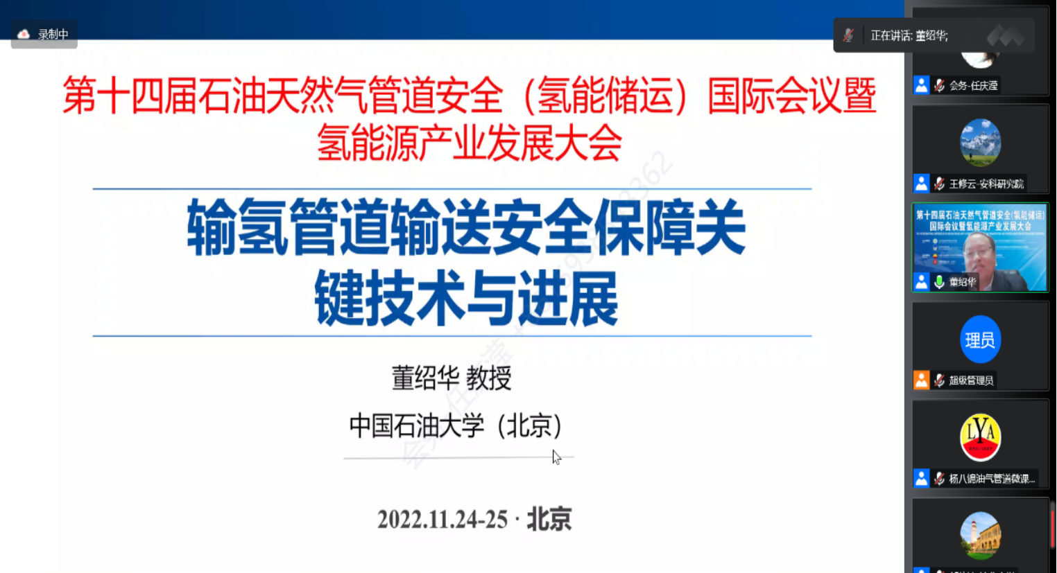 11月24日至25日,由公共安全科学技术学会石油与化工安全专业工作委员会、北京石油学会、中国石油勘探开发研究院新能源研究中心、开云kaiyun官方网站(北京)联合主办,油气生产安全与应急技术应急管理部重点实验室、管道技术与安全研究中心承办的“第十四届石油天然气管道安全(氢能储运)国际会议暨氢能源产业发展大会”在线召开。