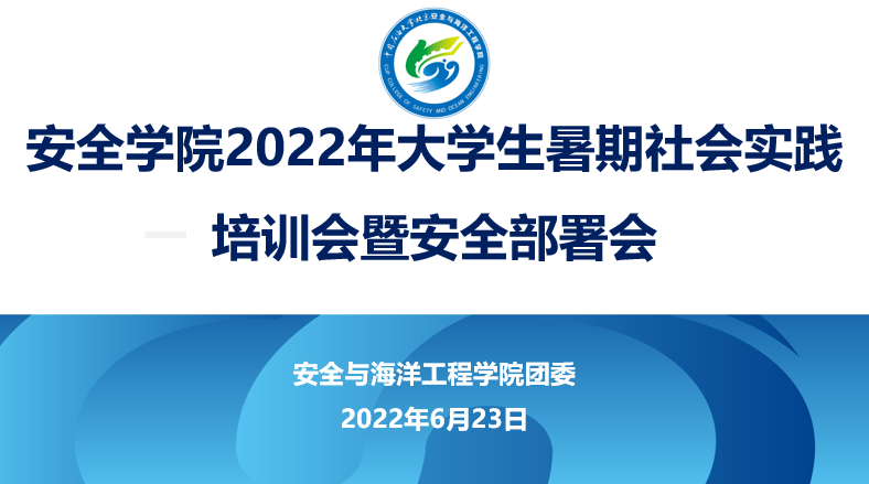 6月23日下午,安全与海洋工程学院在线上成功举办2022年大学生暑期社会实践培训会暨安全部署会,学院团委书记方百会以及全体暑期社会实践团队成员100余人参会,会议由2021级辅导员于晓鹏主持。