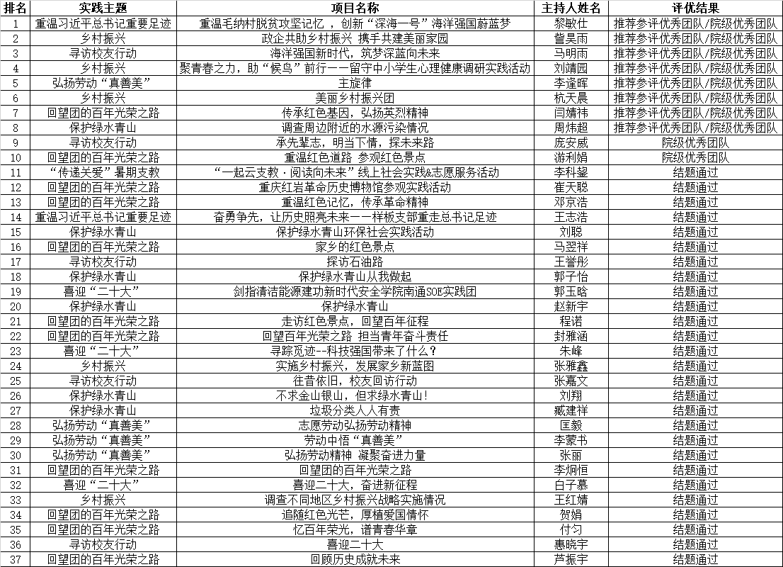 经过评委老师打分,综合各队伍实践开展情况,最终评选出10个院级优秀实践项目其中排名前8的队伍,将被推选参加学校的结题评优。
