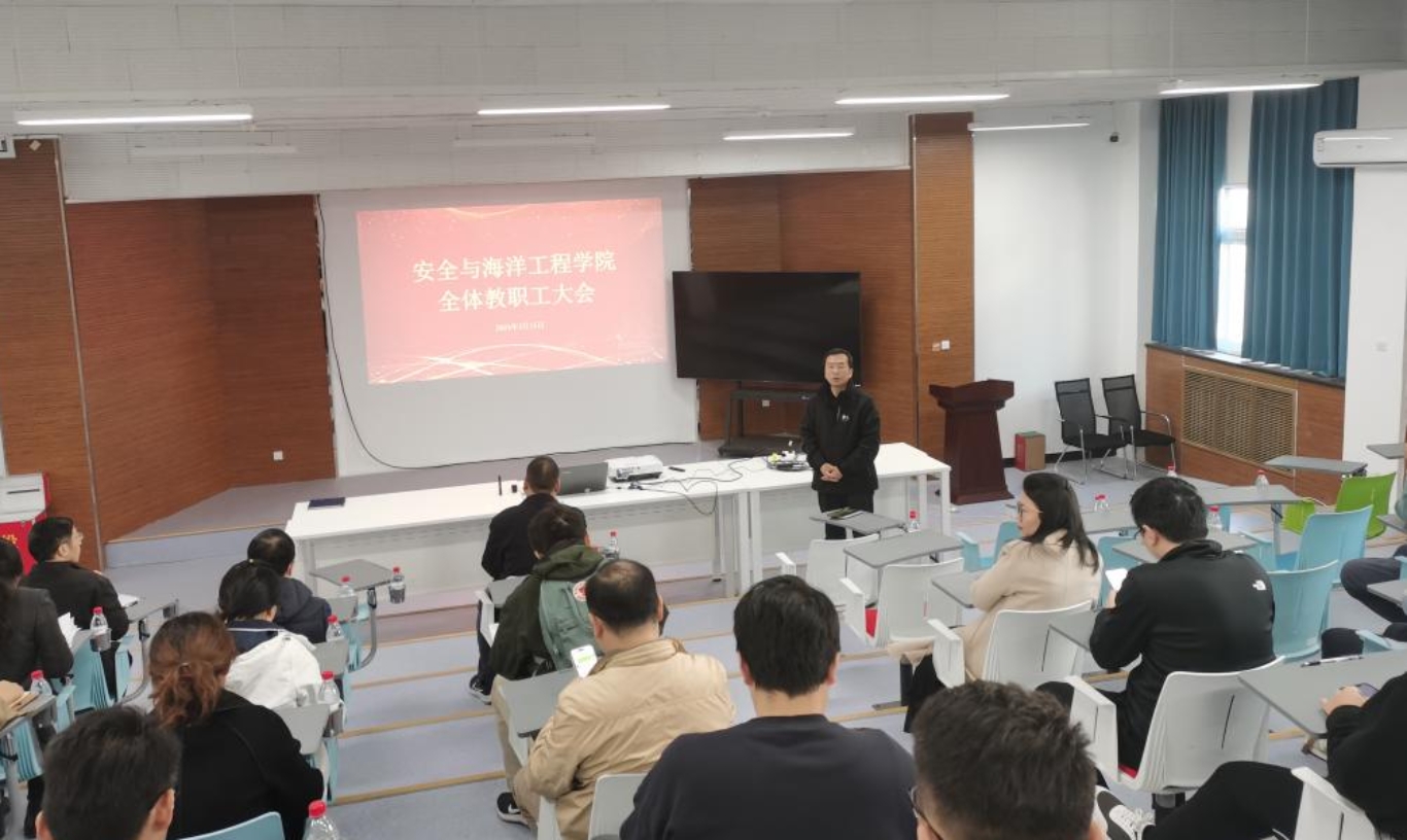 3月15日上午,安全与海洋工程学院在安全科技楼召开全体教职工大会,学院领导班子及全体教职工参会,特邀张来斌院士出席。本次会议部署了2024年度学院工作重点,并对研究生培养与指标分配等相关工作细则进行详细解读,全体与会教师对师德教育进行集中学习,观看违规案例警示与分析,加强学院师德师风建设。会议由学院党委书记孙为主持。