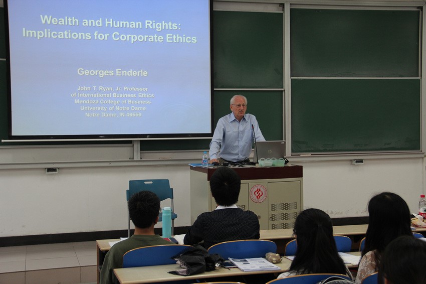 6月1日,应工商管理学院牛琦彬老师之邀,来自美国圣母大学门多萨商学院的Georges Enderle教授来访我校,给学生们开展了一次别开生面的讲座。