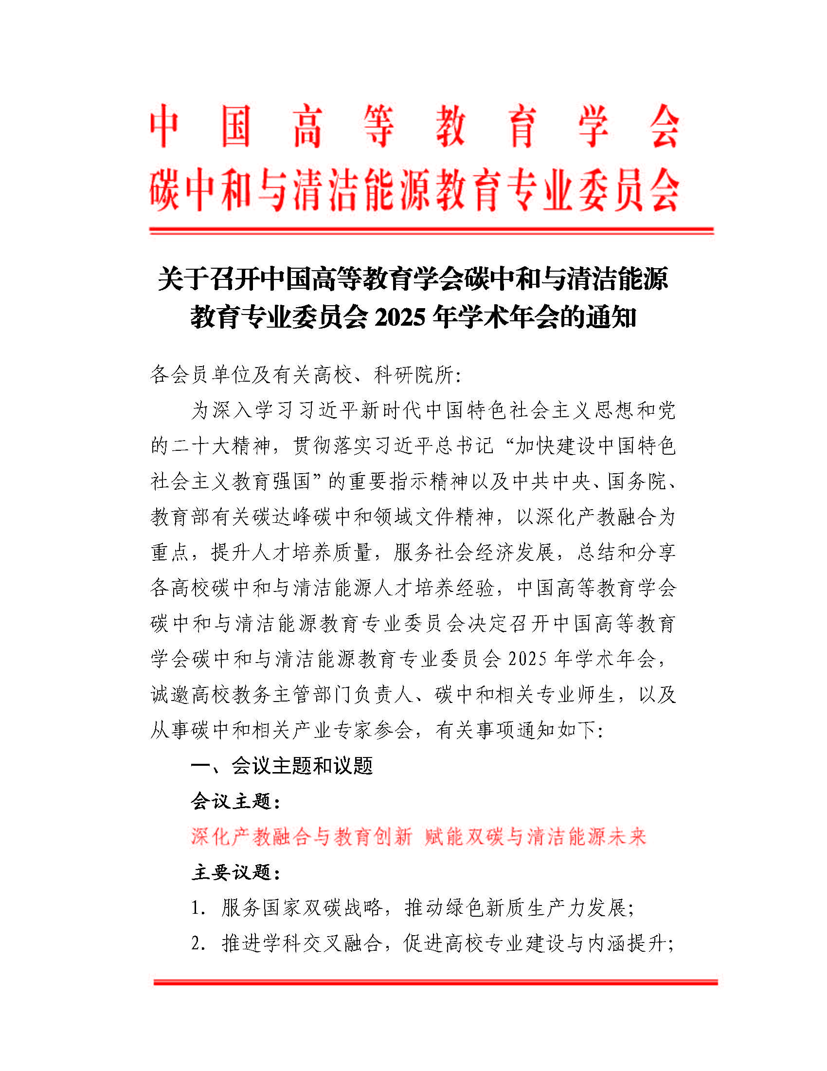 关于召开中国高等教育学会碳中和与清洁能源教育专业委员会2025年学术年会的通知