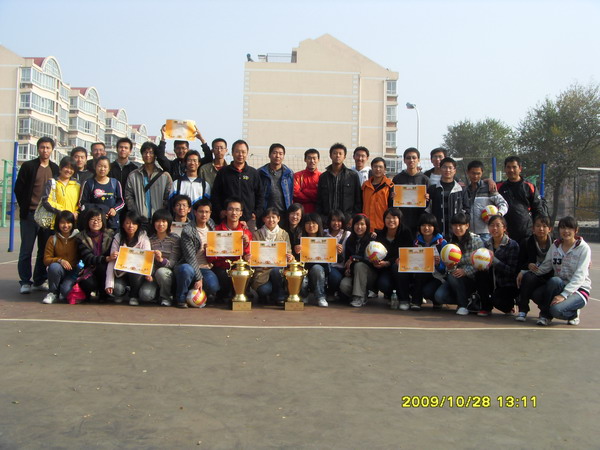 我校2009年学生排球联赛经过几轮激烈角逐,于10月28日在东操场圆满落幕。