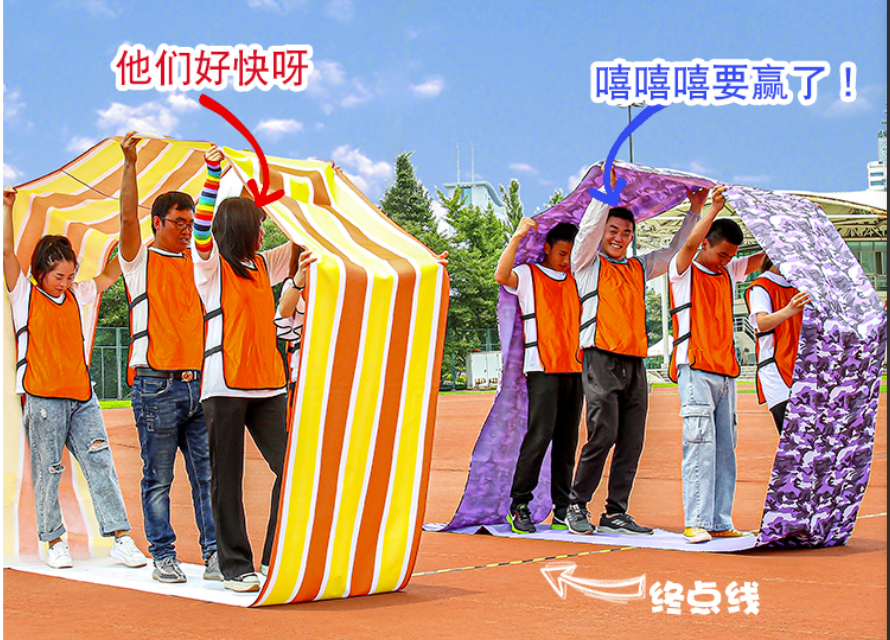 各学院以6名女生为单位,6人手拉手站成一排依次从呼啦圈中穿过,再折返,用时少的队伍获胜。在穿越呼啦圈的过程中6人如出现手手脱离将取消比赛资格。