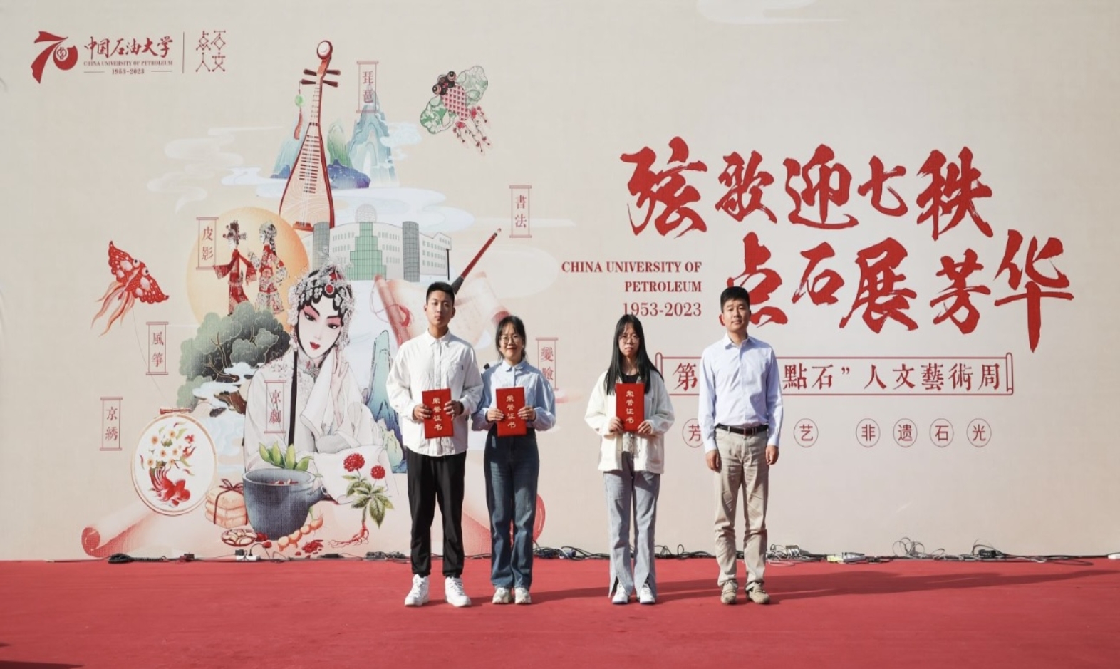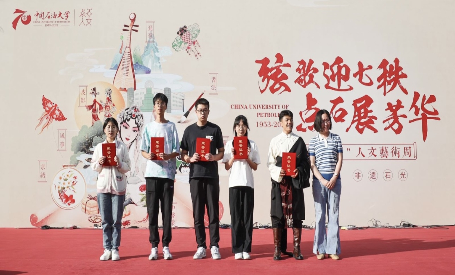 党委宣传部部长李丽平、党委教师工作部部长唐旭、党委教师工作部副部长许博、校团委书记周学智、学生工作部副部长孙净宇为获得“点·石”美育优秀原创作品奖、点·石美育优秀艺术表演奖等同学进行颁奖。为深入贯彻习近平总书记对于新时代美育工作的要求,学校积极促进美育教学改革,结合当下青年大学生的认知水平、兴趣爱好,开展了系列美育实践活动,在活动中,来自学校各社团学生积极参与,表现优秀,共18名学生受到表彰。颁奖仪式由文体学院院长唐亮主持。