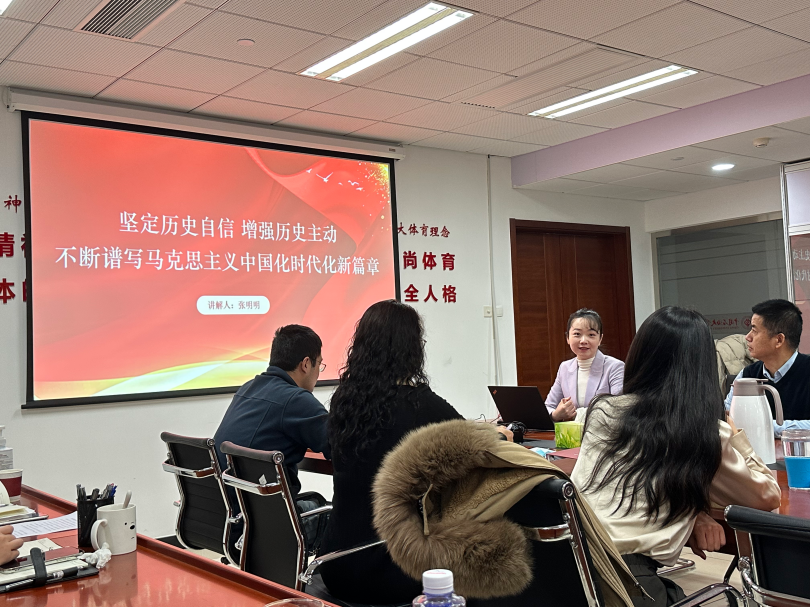 开局起步至关重要,新学期伊始,为深入学习贯彻党的二十大精神,按照学校及学院党委工作要求,文体学院邀请开云kaiyun官方网站马克思主义学院院长张明明教授为学院党员教工做题为《坚定历史自信 增强历史主动 不断谱写马克思主义中国化时代化新篇章》报告。文体学院党委书记张珣,院长唐亮及学院教工党支部全体教职工参加了报告会。