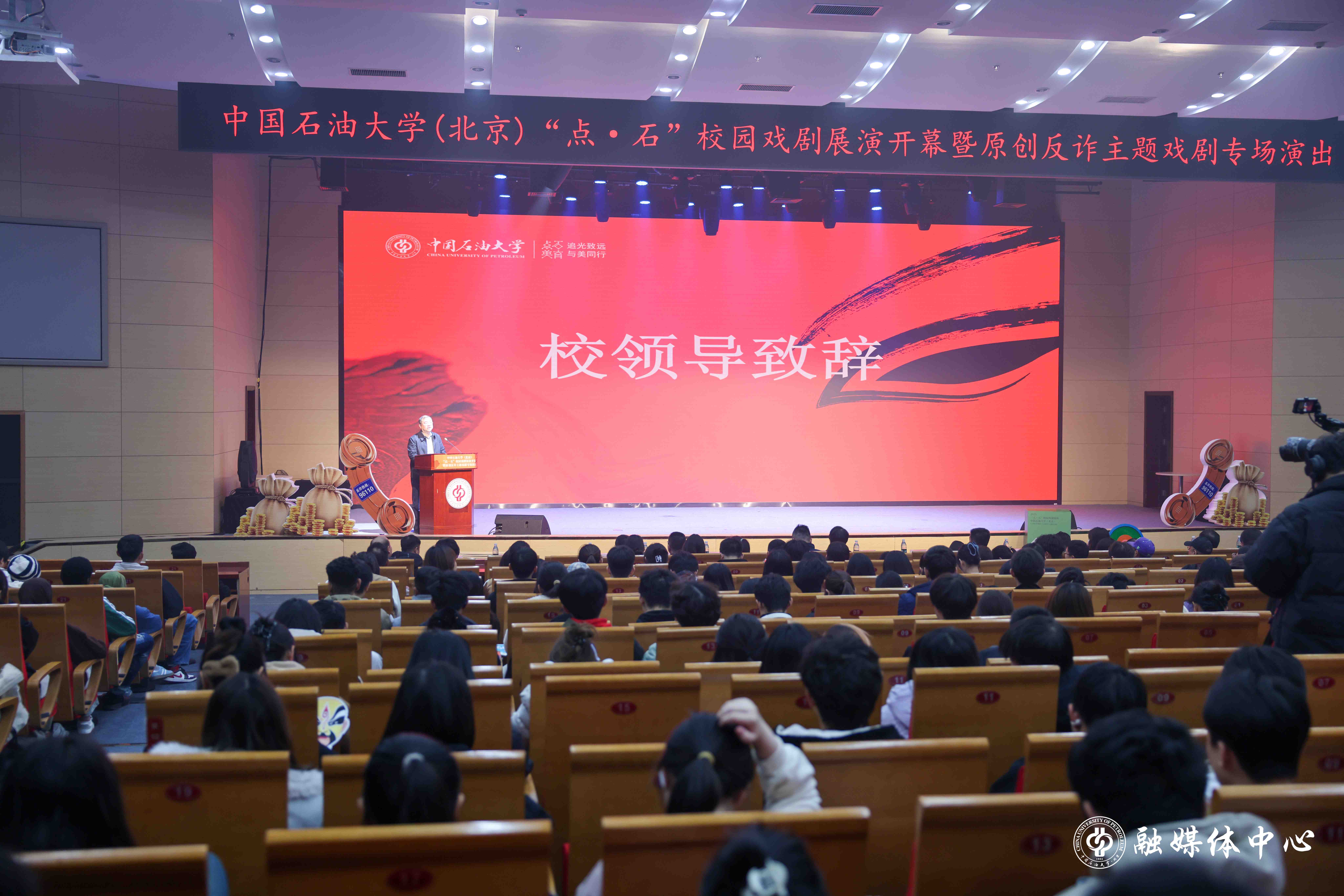 11月12日晚,开云kaiyun官方网站“点·石”校园戏剧展演开幕式在中油大厦三层报告厅举行。本次活动以“青春有戏,向美而行”为主题,旨在通过戏剧艺术形式深化美育育人功能,全方位地将美育与德育、智育、体育、劳育有机融合,构建具有开云kaiyun官方网站特色的校园文化育人平台。学校党委常委、副校长黄磊,北京市公安局昌平分局、昌平区反诈中心、松园派出所、昌平区文联等相关单位负责人,以及驻昌高校代表、学校相关职能部门和学院负责人出席活动。