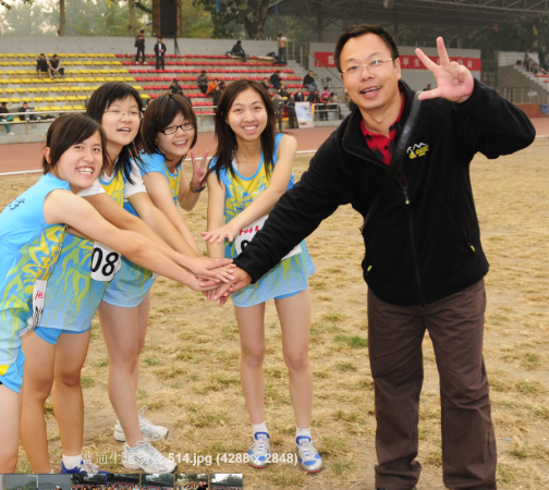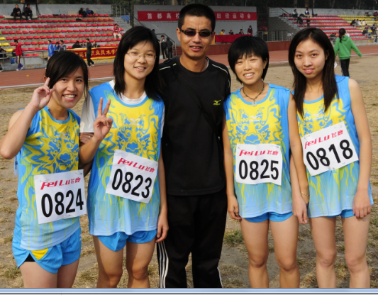 唐亮老师与女子接力队队员合影