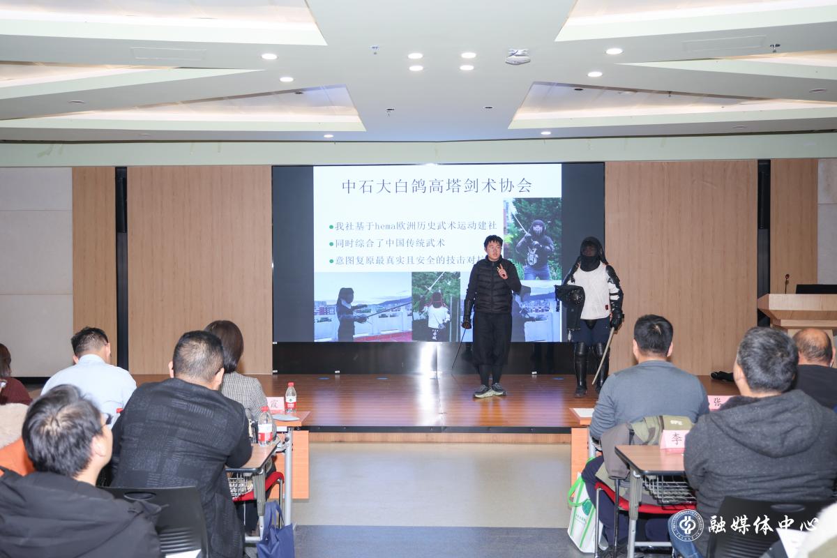 人工智能学院学生霍嘉宇、经济管理学院学生张益博、地球物理学院学生李富成分别试讲展示微课“生成式AI的奥秘”“戏曲的赏与学”“霍顿‘冷钢’英式军刀技术”。