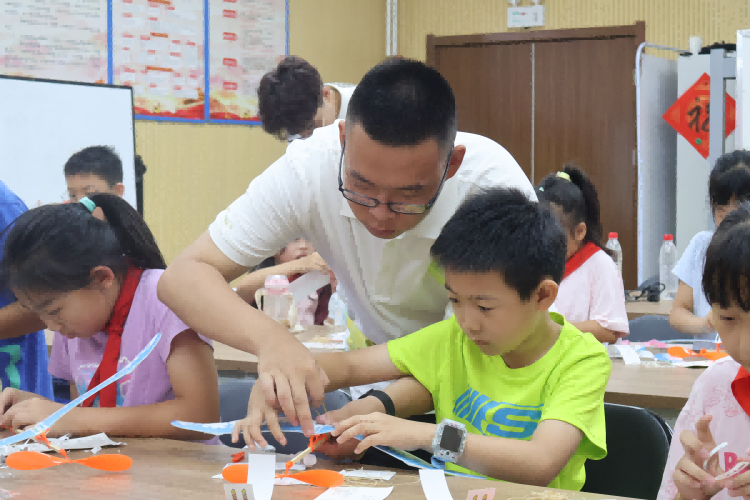 团队走进昌平区城北街道怡园社区,为解决双职工家庭子女特别是两新青年子女放学无人看管问题,围绕“童绘七彩之梦”“青筑能源之梦”“共绘未来之梦”三个主题,创新“翻转课堂”“互动课堂”“手工课堂”“家校课堂”4种教学模式,构建7个维度学习方法,开展了普“双碳”、学AI、科技梦、健体魄、陶情操、爱劳动等十大板块64项特色志愿服务活动,涵盖弘扬爱国精神、传承优秀文化、科普能源知识、趣味科学实验、创意手工剪纸、编织和平花环、防范网络诈骗、防诱拐防溺水、师生素质拓展、加强心理韧性、手绘心中地球、体验劳动之美等内容的室内外趣味暑期课程;顺应人工智能发展趋势,开设“AI就在身边”“大手牵小手・AI +画画”等兴趣课程,让学生近距离感受智能科技魅力,培养人工智能素养与社会责任感;建立“石”志不渝“暖心站”“及‘石’雨”,创新搭建“家—校—社—医四级联动蔚蓝心网”心理健康信息共享平台,破除家长心理健康服务认知壁垒,助力学生健康快乐成长。