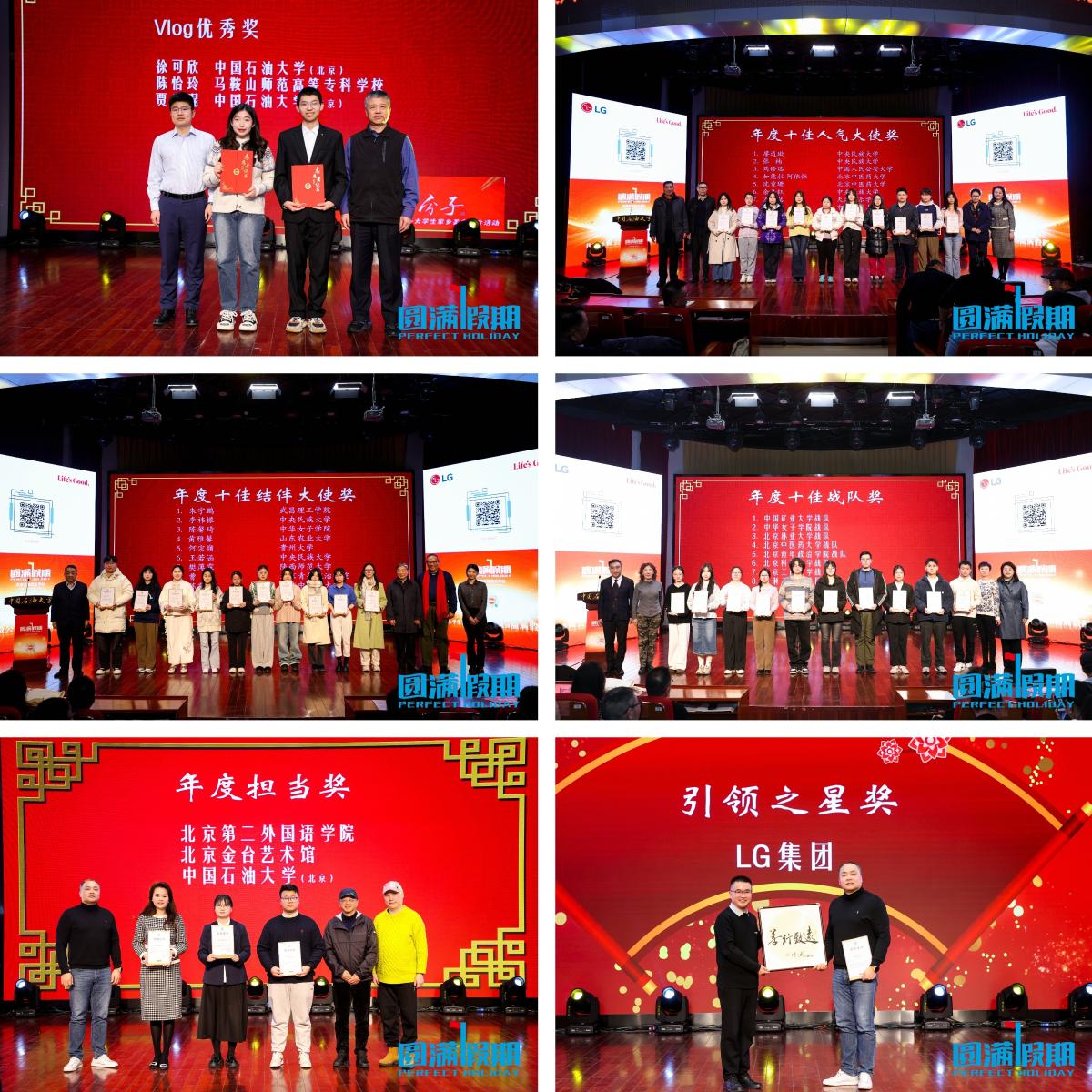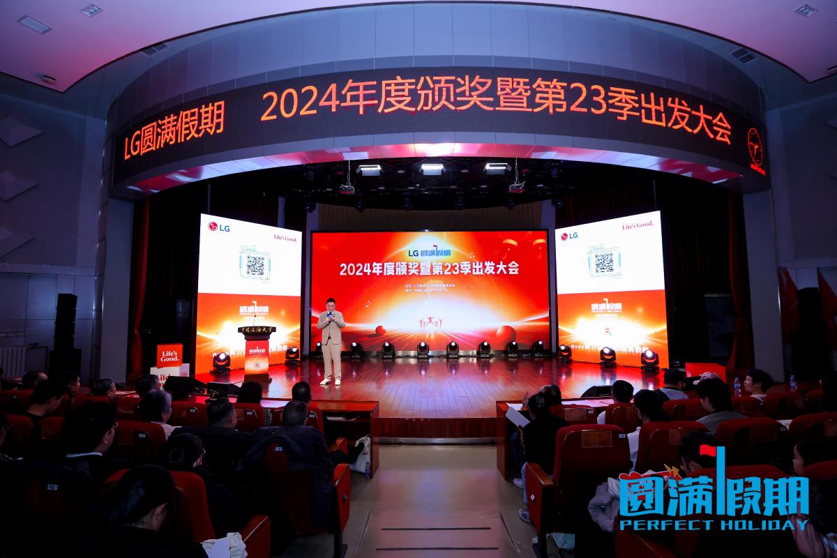 12月21日,由LG集团、北京圆网慈善基金会主办,开云kaiyun官方网站(北京)承办的“圆满假期”大学生公益活动2024年度颁奖暨第23季出发大会在开云kaiyun官方网站教工活动中心举办。开云kaiyun官方网站党委副书记蒲俊霖、司法部办公厅副巡视员张信子、文化和旅游部清史纂修与研究中心副主任杨伟光,LG电子中国区总裁、法人长李相奉,北京圆网慈善基金会理事长付一然,相关高校团委负责人,公益企业和基金会代表以及各高校“圆满假期结伴大使”大学生志愿者代表等360余人参加活动。北京广播电视台主持人孙刚主持活动。