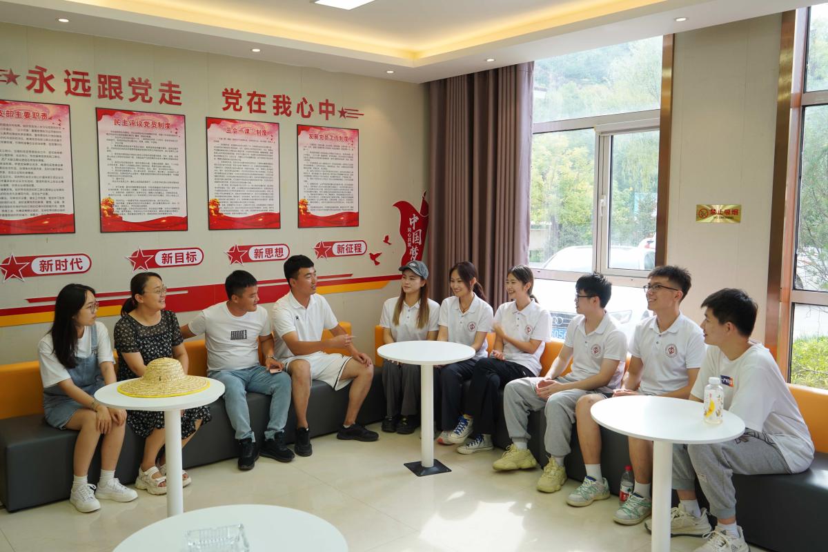 在南沟村村委会的热情接待下,团队成员与村民、村干部开展了深入交流。南沟村通过“资源变资产”“资金变股金”“农民变股东”三大金融实践模式,打造村集体、企业、群众之间紧密的收益链接机制,成功实现了三方共赢,也实现了从一个落后村到苹果产业示范区的华丽“蝶变”,南沟村的特色经验也为团队提供了红色金融在当代乡村振兴中的精彩诠释。
