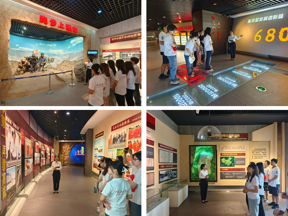 探秘油田展览馆,追忆长庆之魂。实践团在长庆油田展览馆进行参观学习活动,在讲解员“山丹丹”的带领下,实践团成员们从庆阳的第一口井开始了解长庆的成长岁月,从“西部大庆”的口号中感受长庆蓬勃的生命力,从一件件展品中了解长庆石油人“我为祖国献石油”的辉煌奋斗史,感悟“能源的饭碗必须牢牢端在自己手里”的时代责任和历史使命。
